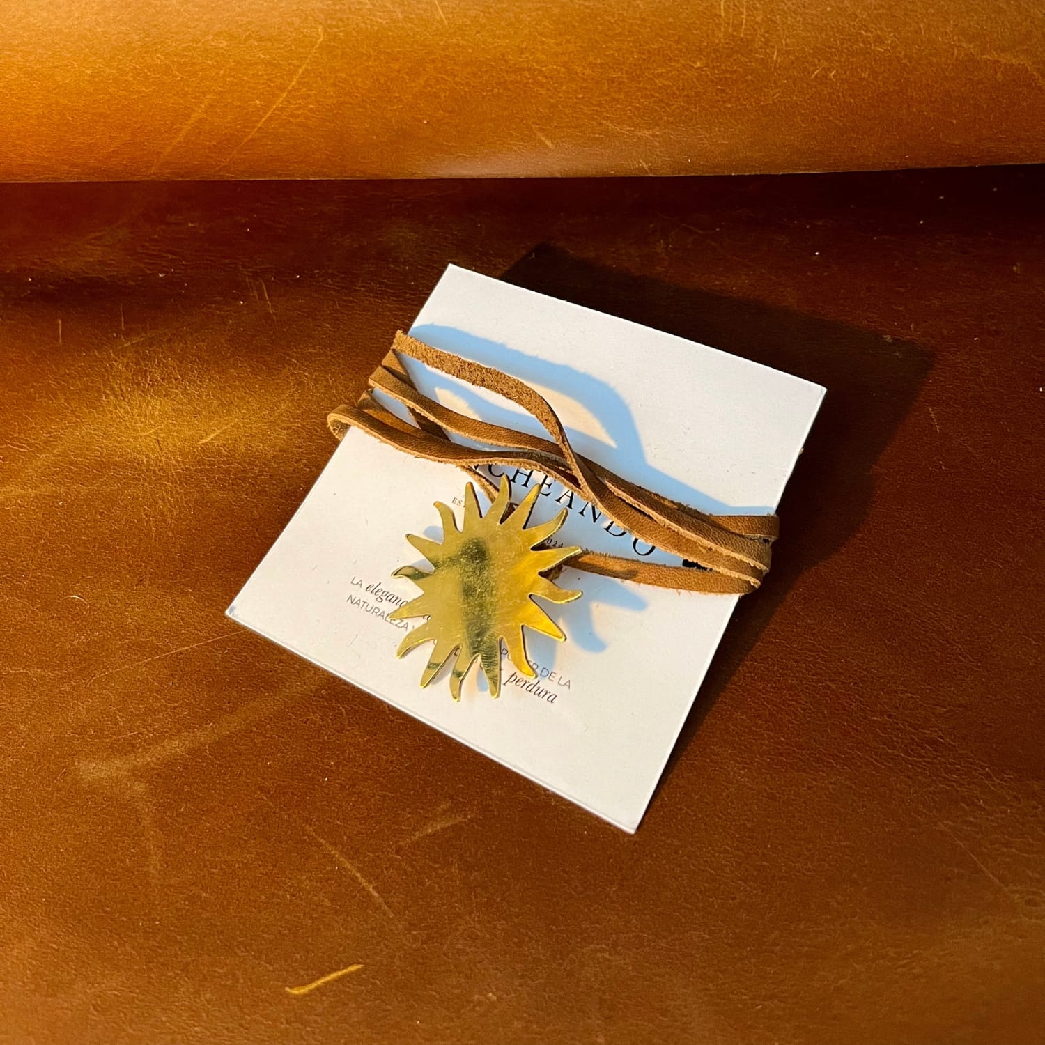 Inspirado en el Sol de Mayo, símbolo de libertad y origen, reinterpretado en una pieza de cuero y bronce que celebra nuestras raíces.